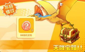 幸运直购宝箱:翼龙爪着一个宝箱扔过来啦!宝箱里面有1个SS级随机宠物,需要看30秒的广告才能领取,所以看广告这种简单的事就不容错过啦!