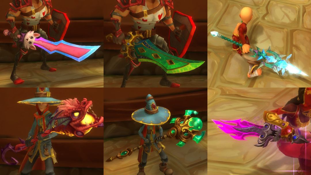 在地牢守护者2中,每种武器都分了类型,且每种职业都分了可用武器类型,我将分武器类型展示这些联动武器,排序按它们在地护2中的品质低到高排列