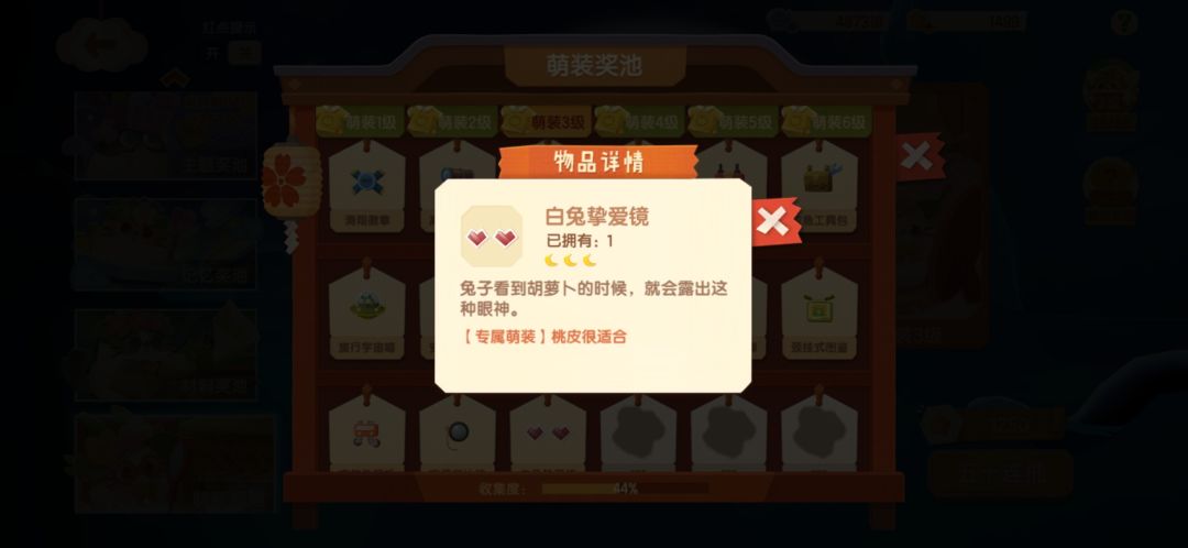并且我印象中抽三级的时候,根本没有抽到过桃皮、奶昔的萌装,根本不知道这个占位的萌装从哪来
