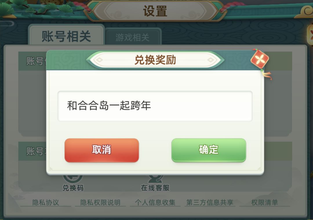 最后给大家奉上今日兑换码:和合合岛一起跨年