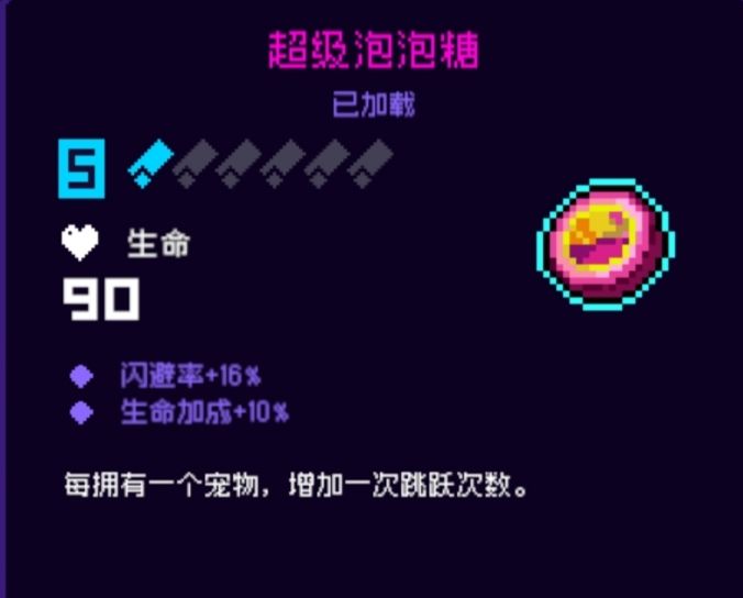 六号格子的选择不要飞行,也不要帽子以及彩票,这些虽然是传说级的掉落物,但是对我们的打关帮助不大,好的不一定是对的,因为打到普罗米修斯的时候禁飞,在触发普罗米修斯第二形态的时候没有连跳根本打不过去,所以六号位选择一个可以连跳的掉落物,也是最关键的“超级泡泡糖”。