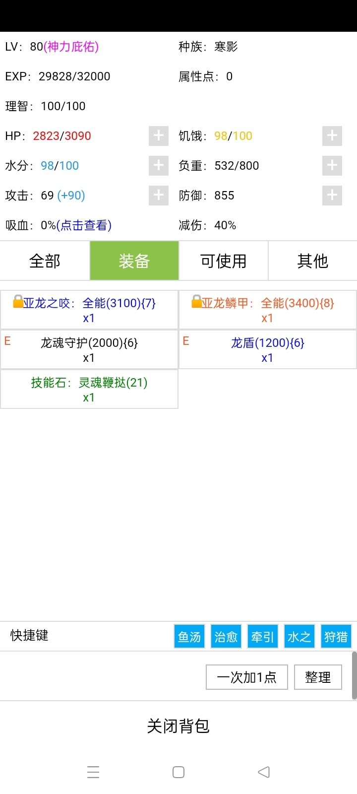 9龙魂龙盾+生死转换+3圣光之心+血瓶