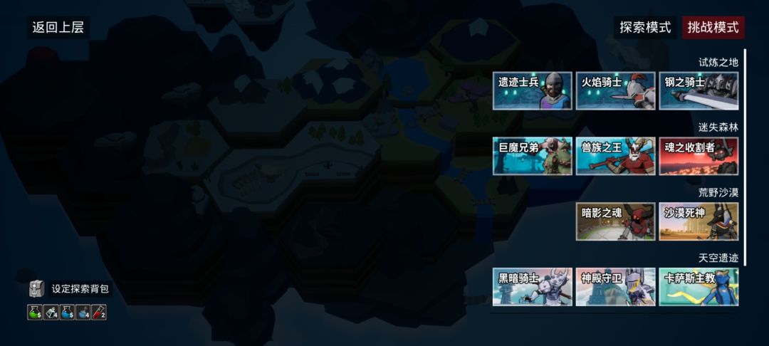 温馨提示 探索要打过第一关第二层的火焰骑士,才能解锁对应的挑战关卡(其他关卡也是一样原理)