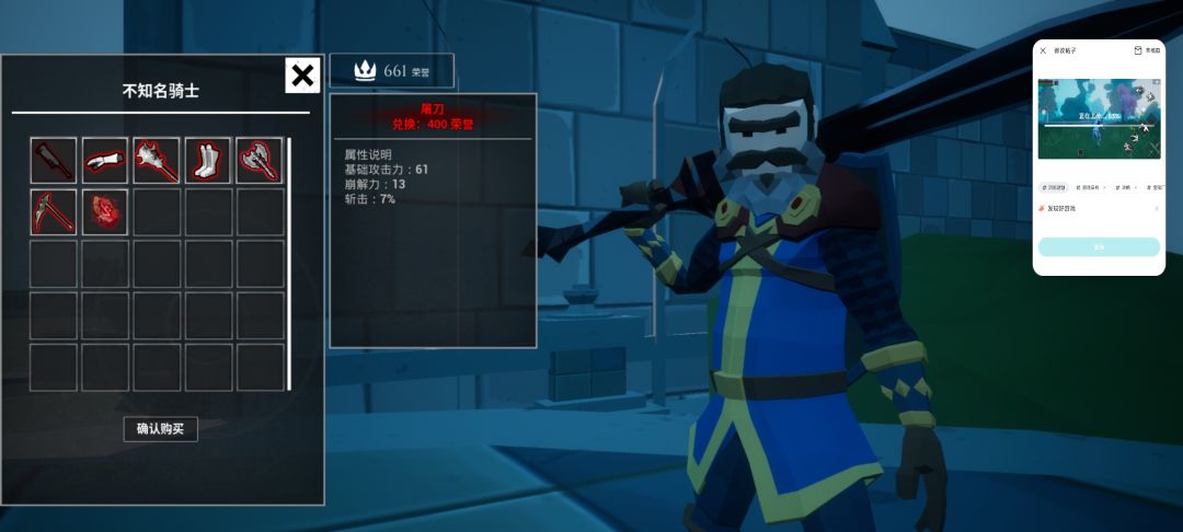 3.雕像左手 概率刷新出无名骑士,200声望卖技能石。(技能刷不出来,退出游戏重进。)