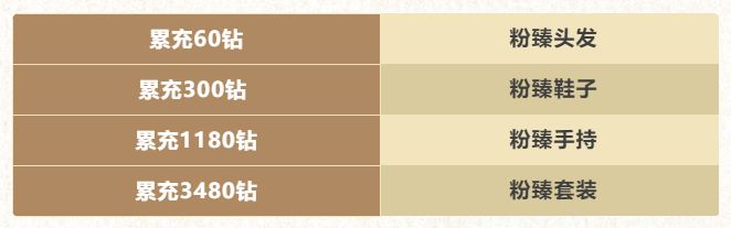 从1月1日(明天)开始参与累充活动,累计充值达到指定档位,这套时尚浪漫的时装就等你收入囊中啦~