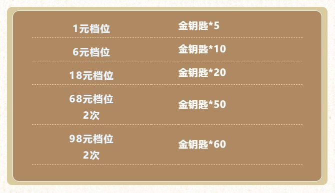 从1月1日(明天)开始,五档特惠金钥匙火爆开售!最低仅需1元即可购得5把金钥匙!68元&98元两种档位还可以购买2次!绝对超值绝对优惠,舞者们不要错过购入金钥匙的机会哟~