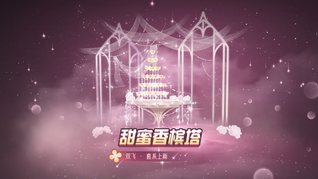 粉色的香槟塔,甜蜜香味萦绕,一整个的浪漫氛围~