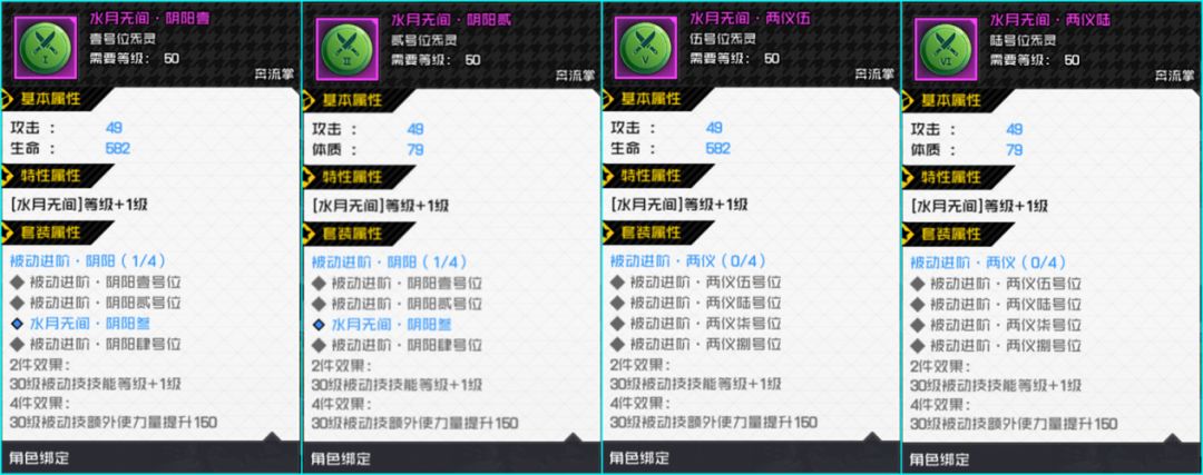 在完成等级提升后,水月无间被动等级可升到10级,通行证+1级,光环+1级,上面这套搭配炁灵技能+8级,10+1+1+8=20级水月无间。