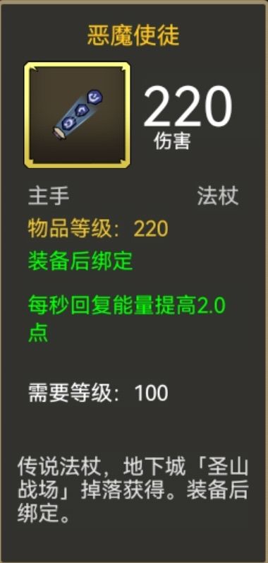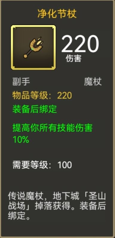主手和副手武器都推荐圣山战场出产的恶魔使徒和净化节杖。这个副本难度比较低。装备获取较轻松。