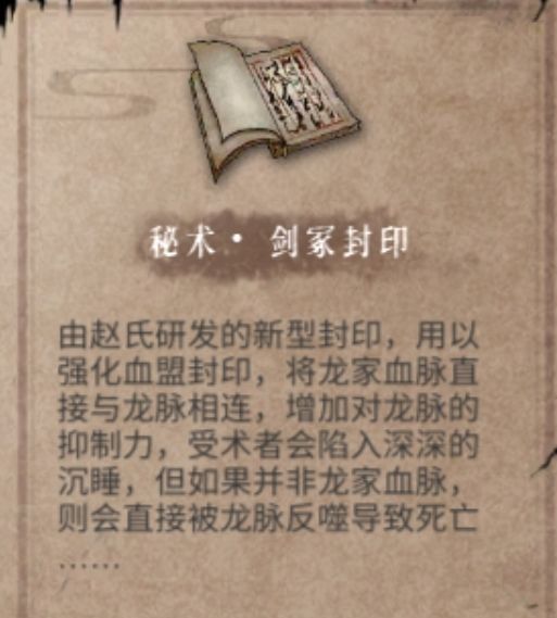 龙帝与四家决定利用赵氏(龟家)研究出来的秘术增强血盟封印。但由于该秘书必须使用纯正的龙家血脉,否则会遭到反噬,而太子黎并不是龙帝的血脉,所以猪家为了保住这个秘密和自己篡位的想法极力反对,这让龟家主赵长庚十分不解。无奈之下只能采取第二种方法将龙武帝与王座封印在了一起。