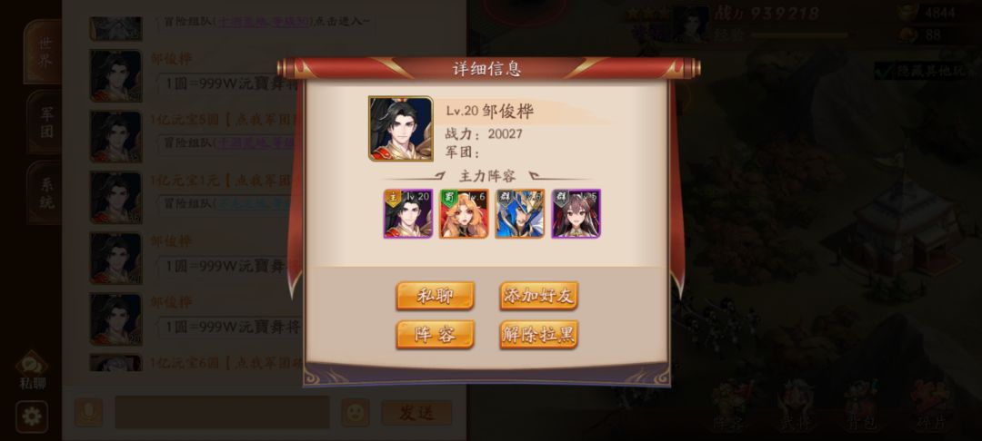 第一次发帖,也第一次被策划恶心到。一开始没用过世界聊天(全都垃圾消息根本没人看)。后面因为要换军团,就想世界问句,特么一看,要十九关才能发,那就咬牙打完呗,打完十九,现在却显示二十三,继续更新是不是得二十六或V5才能聊?本来人少你们还这样限制,真心笑人。