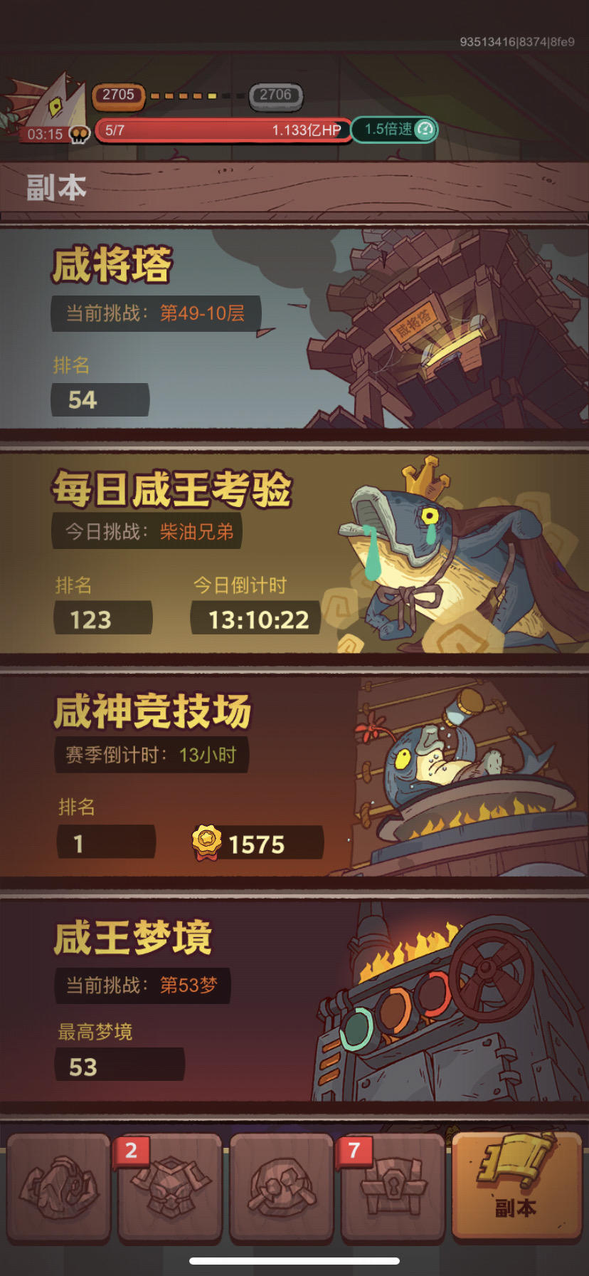 玩了七天了,我现在爬塔有点困难,希望大佬能指点指点小弟,阵容哪里可以改善一下