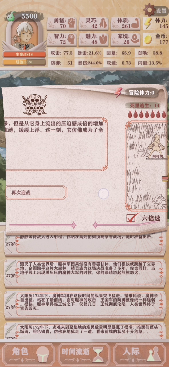 roll点的是roll到了一个死亡回归和一个什么东西,总共加了4条命,所以干脆就想和魔王比肉