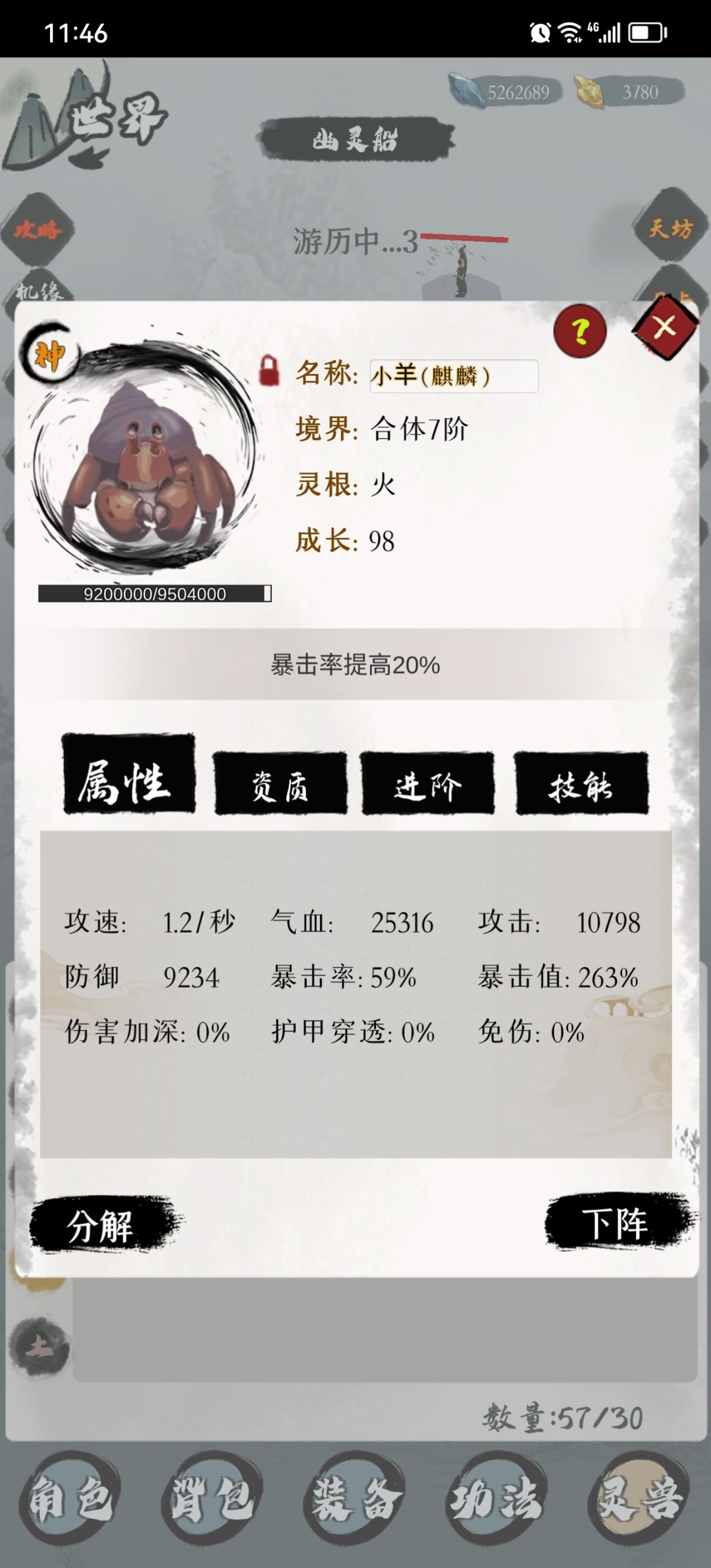 五行:代表各属性攻击加成越高越好,游戏内丹药最高提升到95。