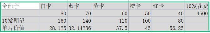 无活动抽卡红卡的期望=56,因为活动还没出,所以不知道性价比