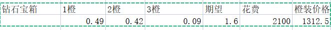 钻石宝箱保底一个,剩下俩个根据30%的概率出橙色。那么我们很容易算出,得到3橙的概率=0.3*0.3=0.09。2橙色的概率=0.3*0.7*2=0.42,那么我抽一次钻石宝箱得到橙装备的数量的数学期望则是0.49*1+0.42*2+0.09*3=1.6个。然后就能计算出橙装的价值为1312钻石。