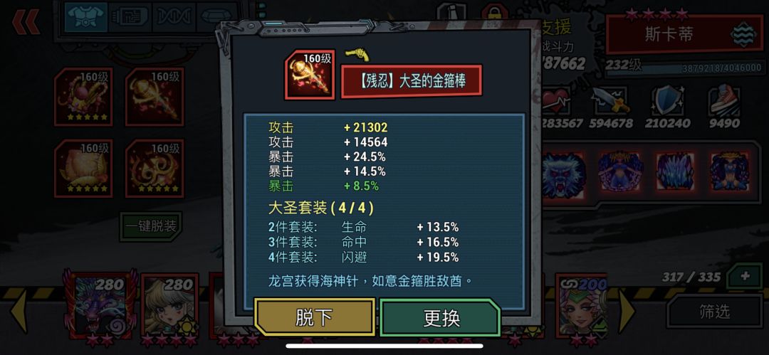 两件160两件150混搭即可,现在暴击输出是主流,所以堆爆抗为主,武器和副手同上,暴击和生命为主。