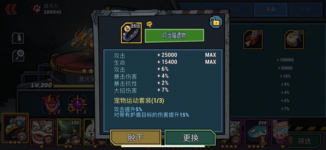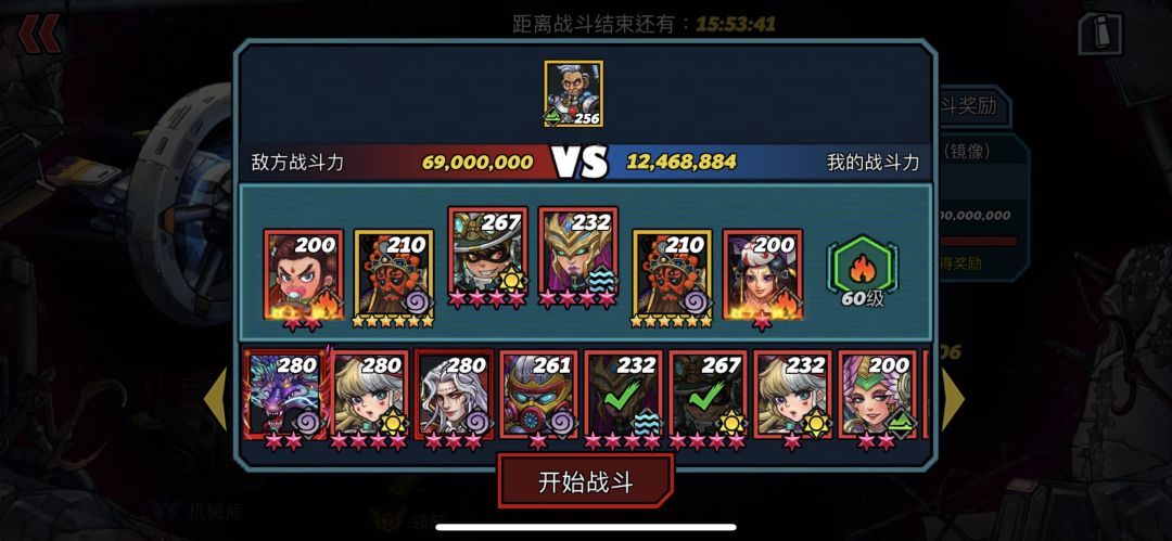 升级阵容里绿帽和狼女必须十一星才能上场,否则做不出来永动机的效果,而且绿帽不要链接女王了,不然狼女会乱给怒气,绿帽不能保证每回合开大招的话是扛不住boss攻击得,也不用堆攻击,随便给点装备就行。