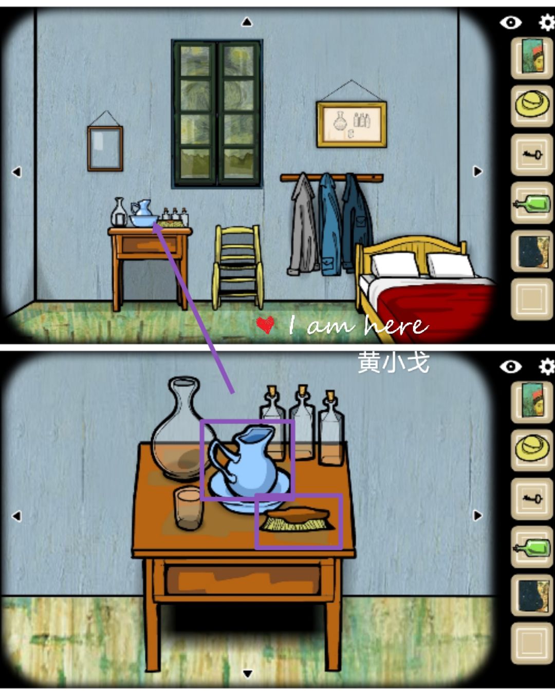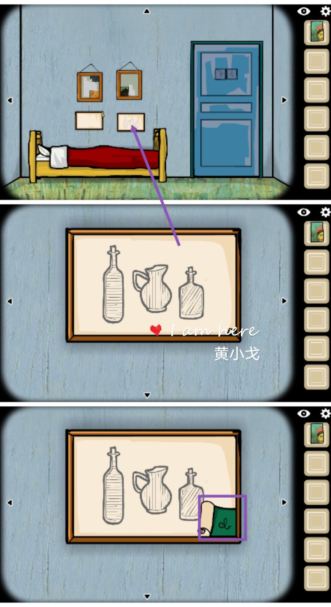 1.(房间口场景)点击墙上的画,在第一幅画后面获得【油画碎片】