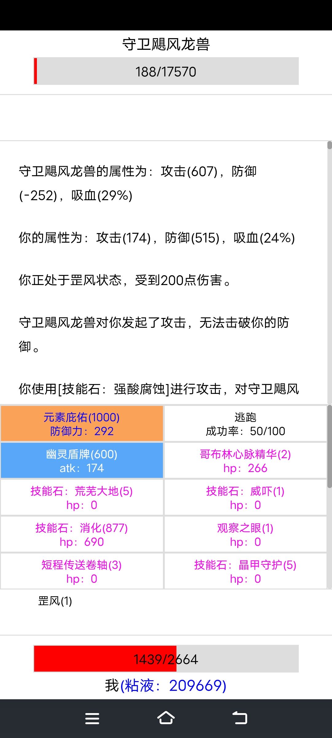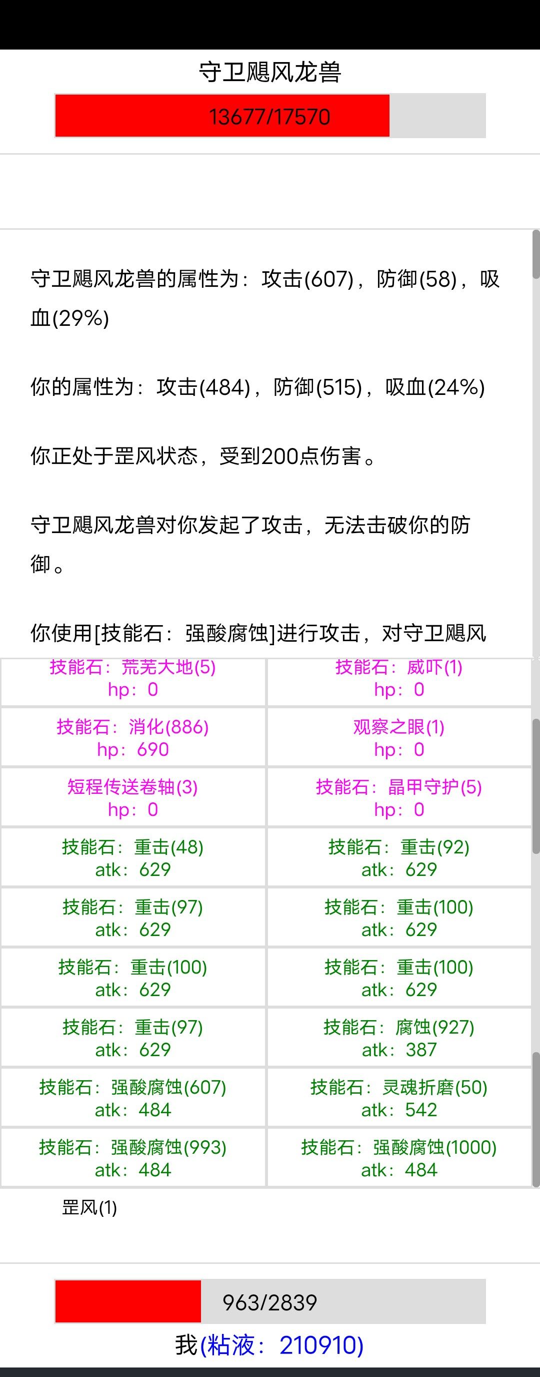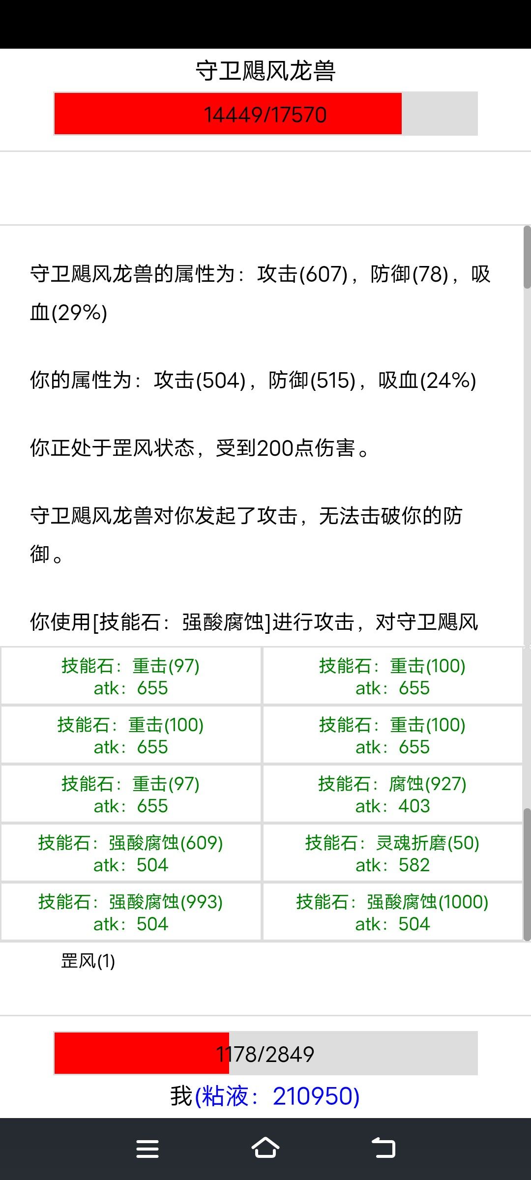 史莱姆 使用强酸腐蚀减对方防御10点 同时也减自身攻击10点 有点小离谱 后来发现腐蚀也会减自身攻击 这bug不知道啥时候出来的