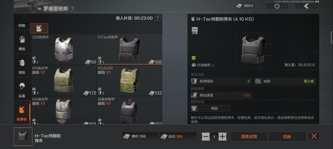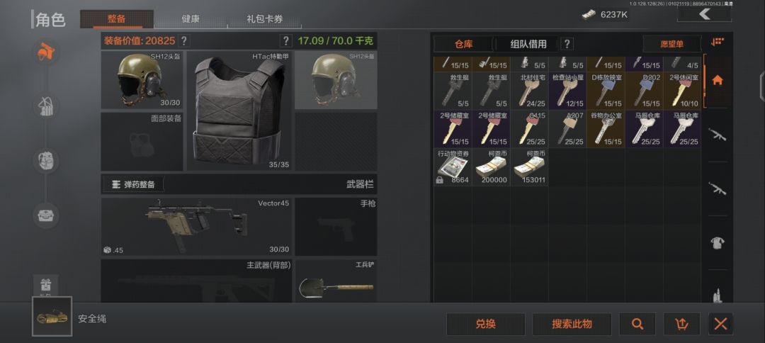 文森处购买头盔5002,兑换3级甲5300左右,BH胸挂721,中型登山包800,武器你可以弄个自己喜欢的,我带的维克托3级弹用了都说好