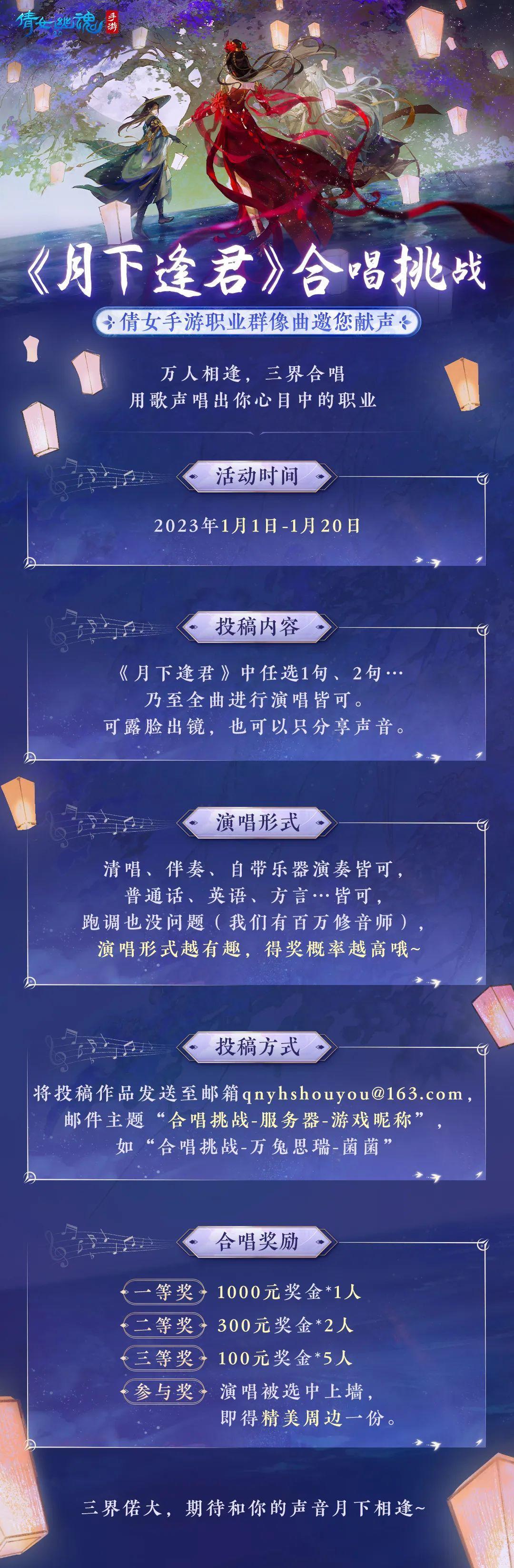 在此,《月下逢君》万人相逢合唱挑战正式开启!菌菌准备了千元丰厚奖励,小伙伴们快来用歌声“宣示主权”,唱出你心目中的职业风采吧!投稿方式戳下图↓↓↓