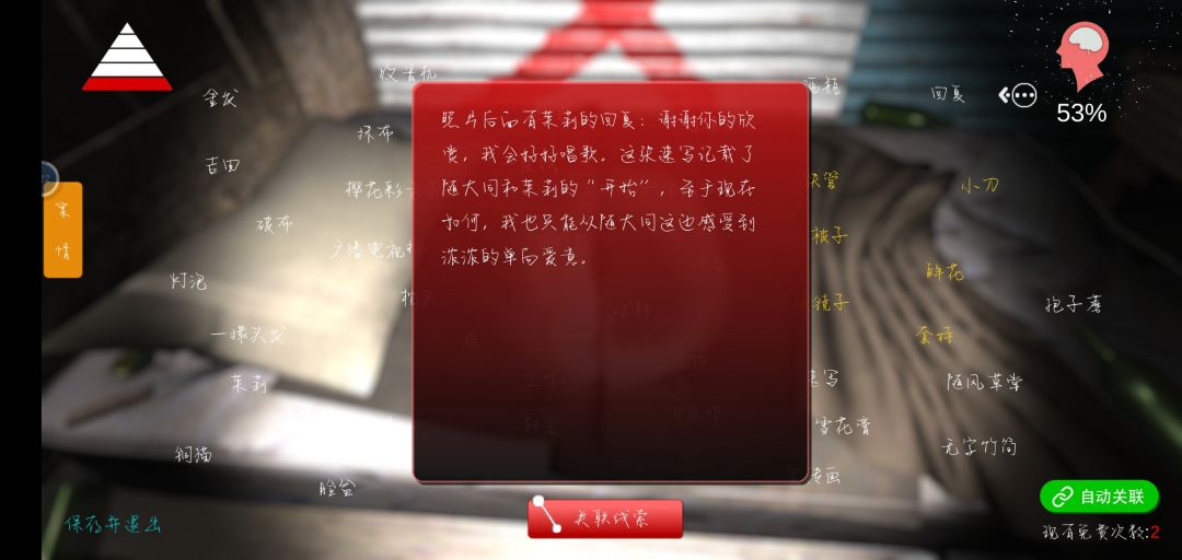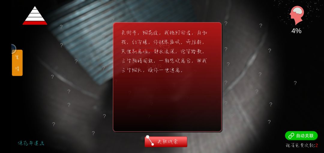 最后,密室一直走会看见一个奇怪的东西,做好心理准备千万别被创到(本人在蜘蛛等类似物体前疯狂掉san,所以就不放图了)
