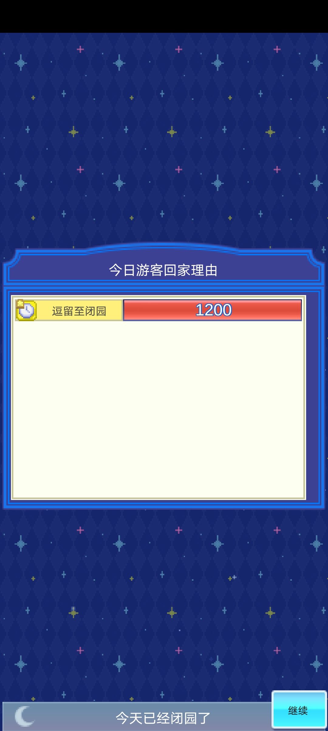 游客数上限1200,逗留至闭园人数为1200时是最理想的状态。