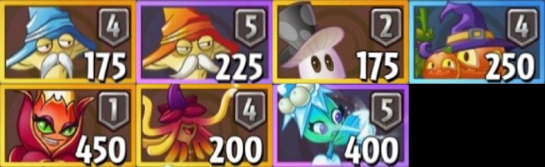 寒冰菇、烈焰菇、魔术菇、南瓜巫师、火焰花女王、金缕梅女巫、槲寄冰仙子
