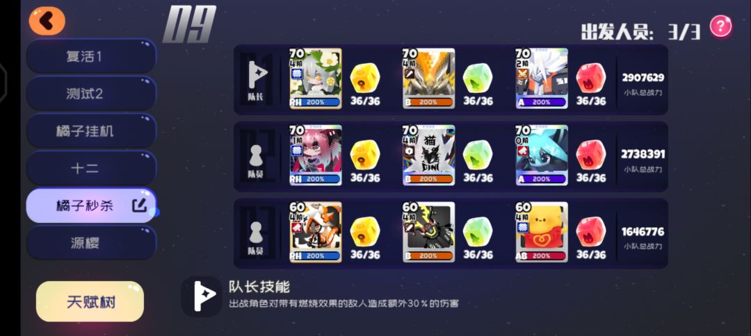七星橘子队长技能:出战角色对带有燃烧效果的敌人造成额外30%的伤害。