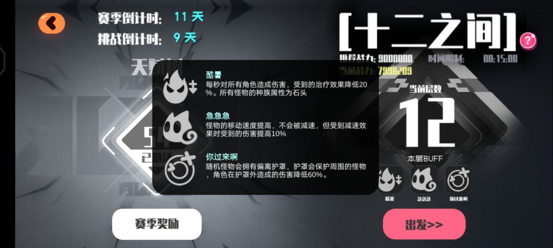 十二间某buff:所有单位每存活20秒,就会让伤害提高5%,最多叠加3层。