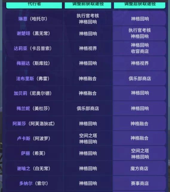 1.共鸣系统机制调整获得重复代行者时,将会自动转换为对应代行者的神格,获取超出6个重复神格后会自动转化为对应数量的神格模块或神格模组,可在神性收容商店中使用。使用代行者的神格可以为对应代行者进行神格共鸣,每次神格共鸣消耗1个该代行者神格。每位代行者可最多进行6次神格共鸣,每次神格共鸣都会点亮神之支点,并获得神之支点中的神力,为代行者提升数值或增强技能效果。