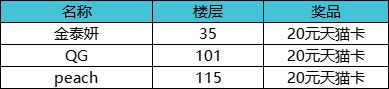 随机抽取3名正确参与活动的玩家,赠送20元天猫卡一份;
