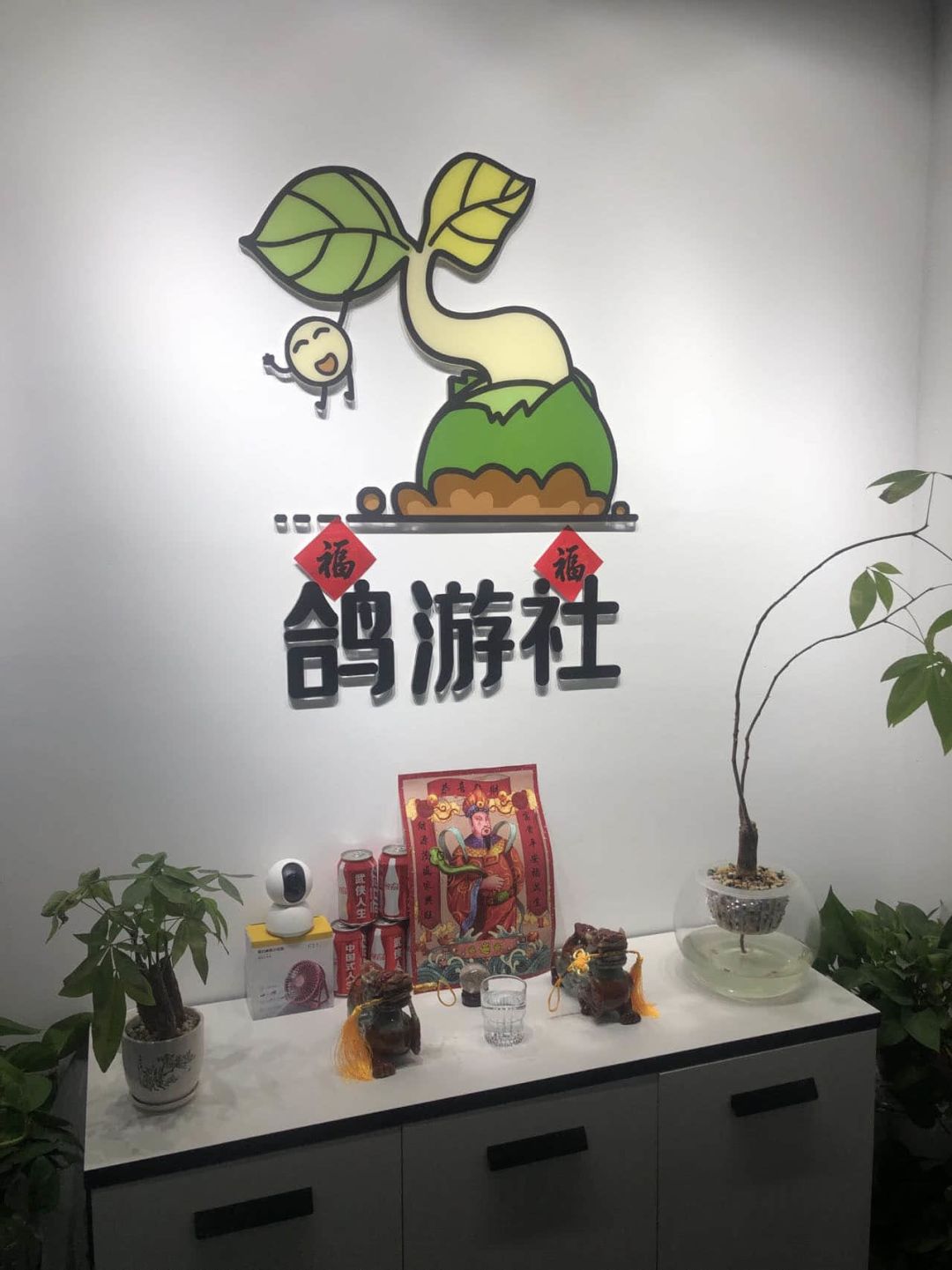 事情是这样的,俺们小破工作室在搬家之后,因为犟游社的犟字实在太复杂(做亚克力板太贵……),就改用了“鸽游社”作为工作室小招牌: