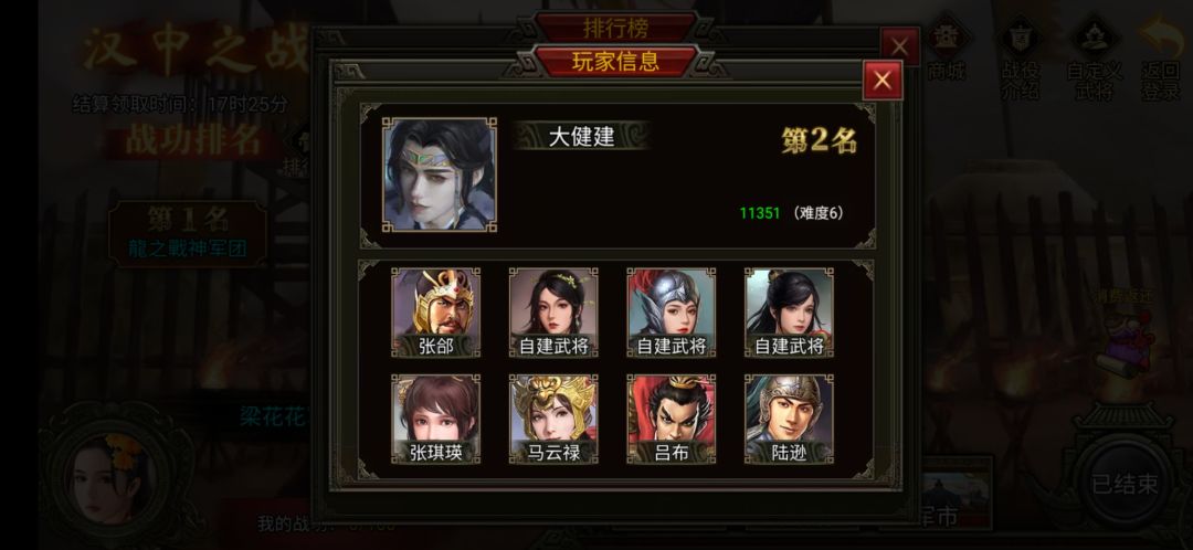 这次排名第一依旧是大家熟悉的老朋友——龍之戰神,在这次汉中之战中,龍之戰神再次打破自己的高分记录,成功超越自我,非常厉害!