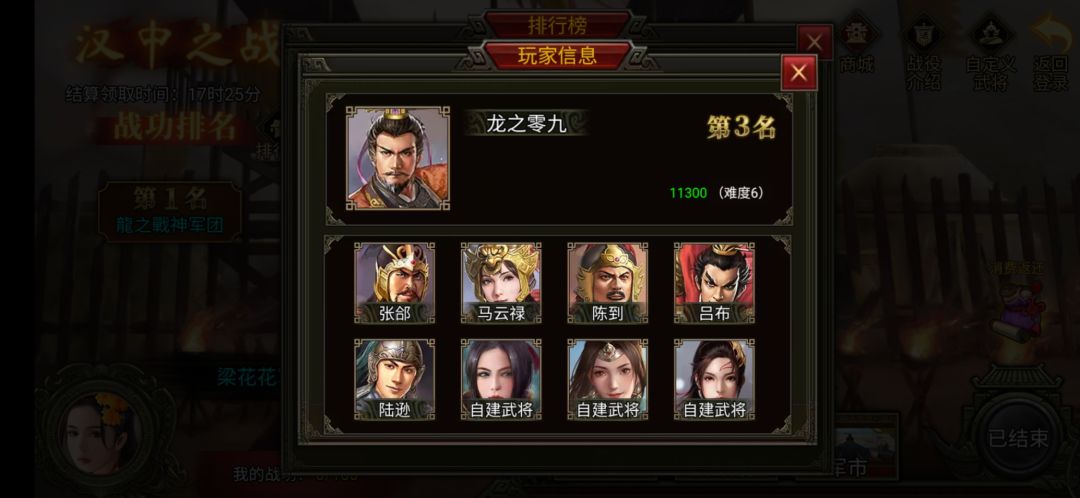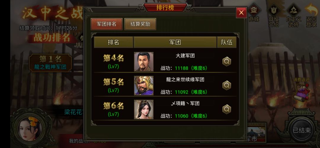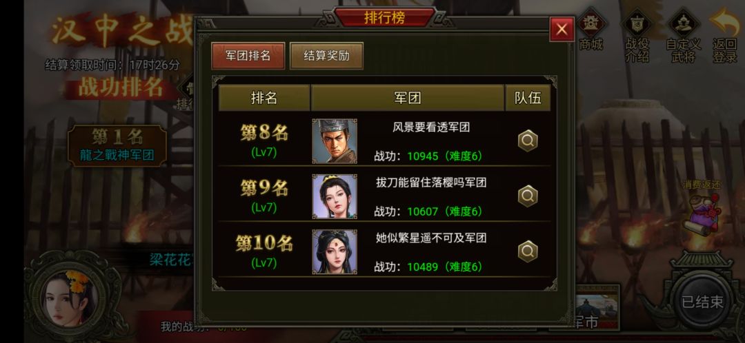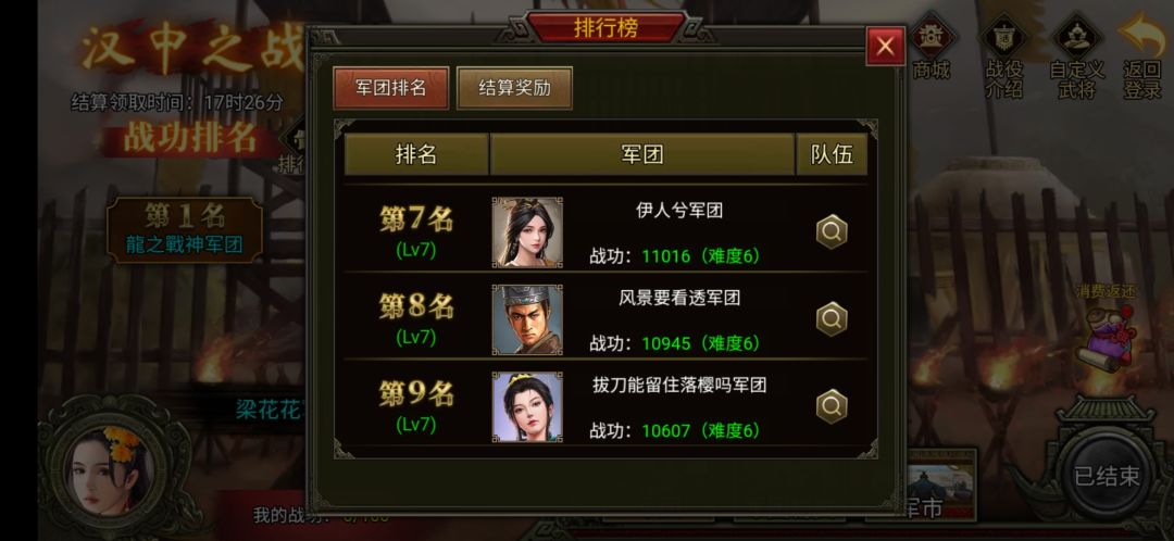 本次排名第三的是龙之零九军团,在这次的汉中之战里,龙之零九也是成功突破了自己以前的记录,很强!