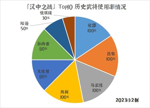 其中,“武将名 x%”代表该历史武将在本次战役的前十玩家中使用率为x%。