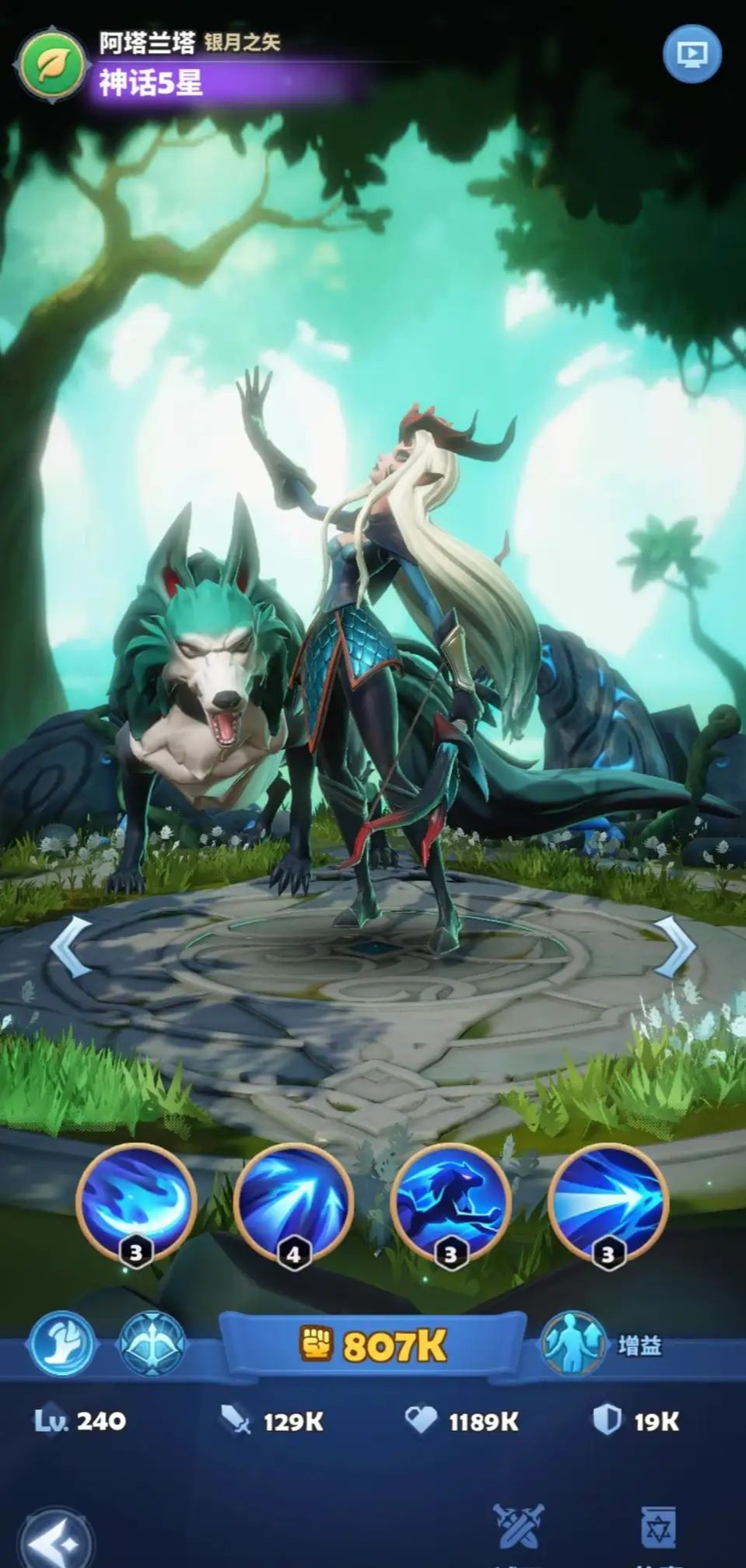 桂冠的阿塔兰塔(俗称狼女),可以防止前排而不被对方前排攻击,初始加速回能,强力辅助。