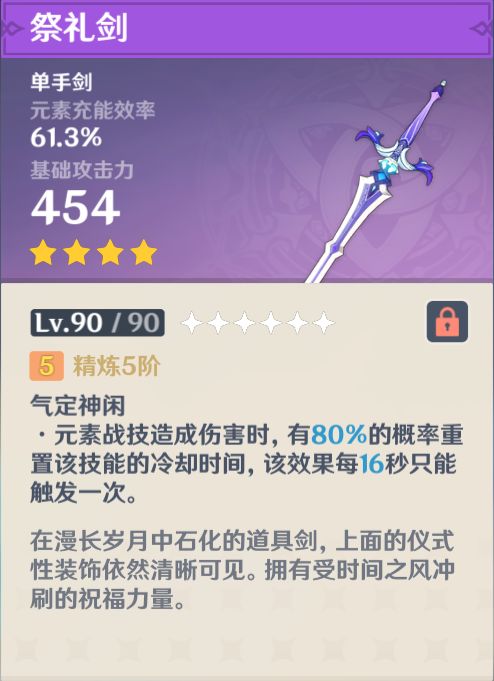 最后提一个有些“歪门邪道”的玩法——祭礼剑绫人。高精祭礼剑使得绫人可以将自身的12秒轴变为20秒,大幅延长挂水时间保证香菱持续蒸发的同时提供多一次让怪物附着火转水的机会,同时将自身eq的cd与香菱q统一,使得队伍相性瞬间好了许多。不过绫人的这个玩法比较偏“工具人”,脱离香菱q后出伤能力很差,全队基本围绕香菱的q打循环。只能说如果自身box实在打桩乏力,需要追求满星时,祭礼绫人可以算是无奈中的一个优解。