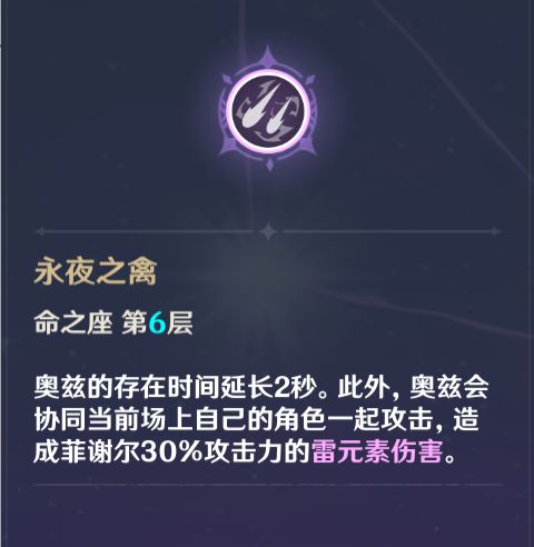 在队伍四号位的选择上,钟离和菲谢尔是适配度最高的两名角色。钟离e的cd与绫人相同,玉璋护盾可以提供队伍缺乏的生存以及20%的减抗,且钟离佩戴磐岩四件套可以提供35%的水增伤(纯水队可以很轻易地打出水结晶),是追求稳定时比较优质的队友。菲谢尔则是作为副c加入队伍,水雷共存的特性让万叶并不难同时扩散到两种元素(皇女奇缺增伤,万叶对其提升很大,且皇女一轮e一轮q可以做到几乎完全不占用站场时间就让奥兹常驻在场上,六命的普攻连携输出机制也与绫人的输出模式十分契合。唯一比较需要注意的是,皇女的e会锁住万叶的增伤面板,所以开局e或q挂雷让万叶双扩后,需要再次切出皇女用e重置一下奥兹才能吃到万叶提供的增伤buff。