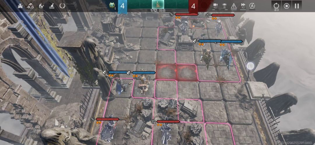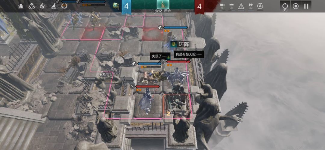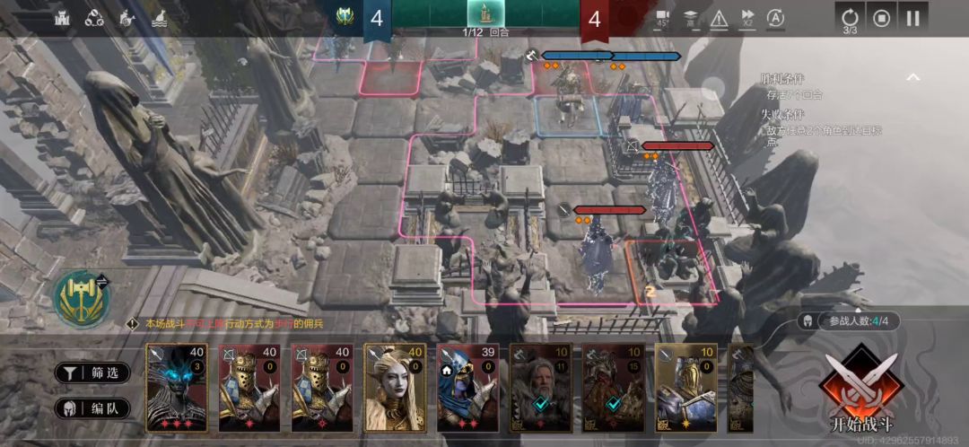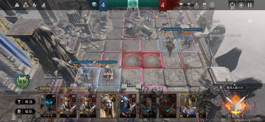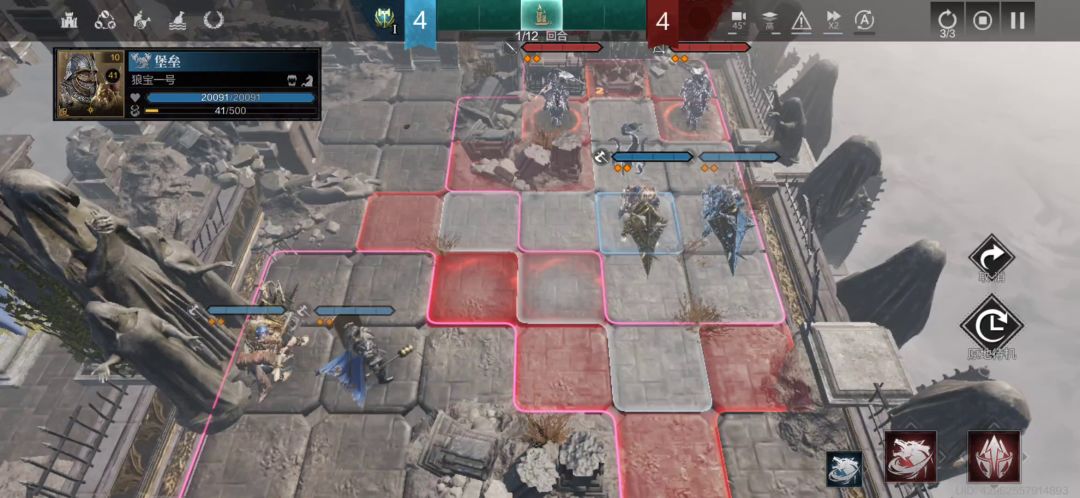 (2)第一回合,左下方的统帅往下走2格,堡垒一号往下走一格堵路,AI就会一直打统帅,应该是AI会优先攻击这个位置的单位,和练度高低无关,右上方还是和以前正常的换位操作。