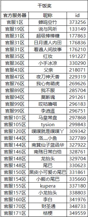 干饭奖(未获得幸运奖且符合要求的干饭人):勾玉*1888+召唤卷轴*20;