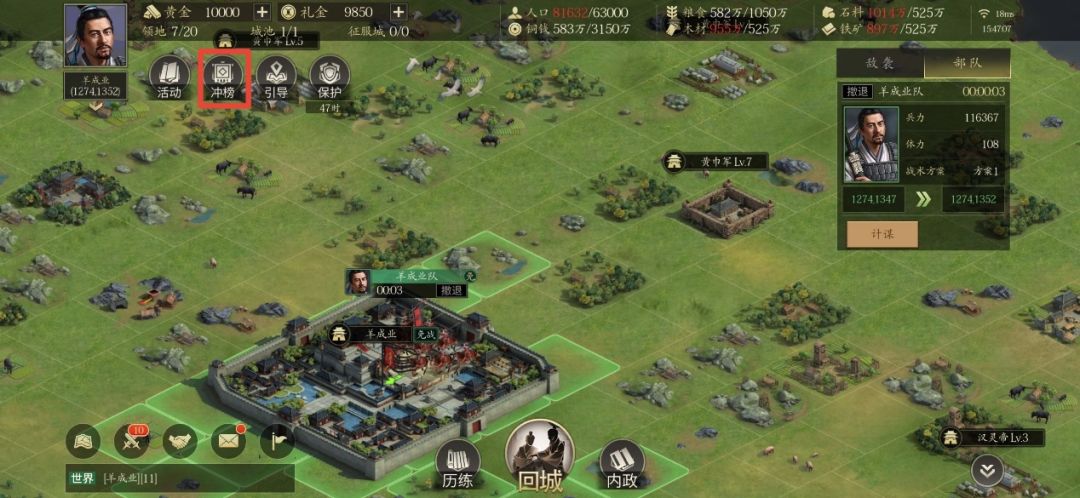 抓捕普通名将的步骤与抓捕野地将的步骤大致相同,只是我们需要攻占十级的黄巾军和汉灵帝城池,在此之前需要提升科技和将领的属性并准备好对应的兵力。