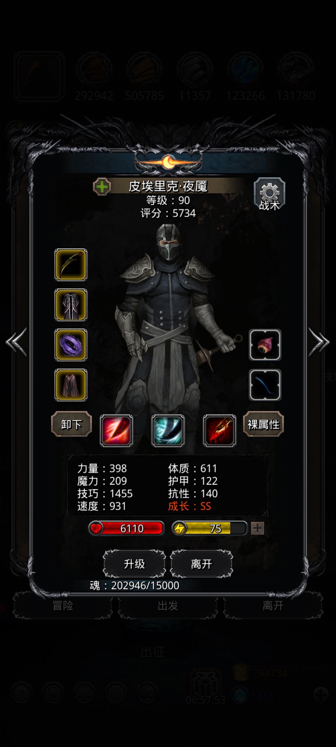 阵容:主要看装备,尽量比截图属性高后尝试,不要浪费水晶