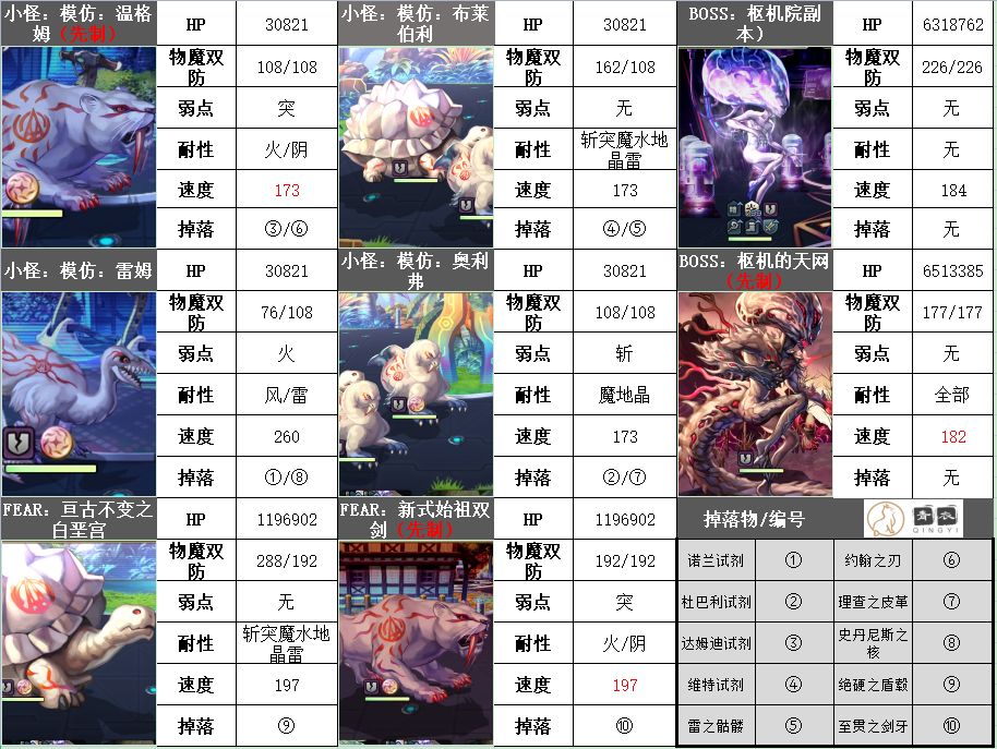 🔹应对先制怪的对策,先制怪有2个(库里欧)/3个(真由),最快的是2图的FEAR-新式始祖双剑,有197速度,速度不低,新人乱速很容易翻车(被AOE带走),需要针对;