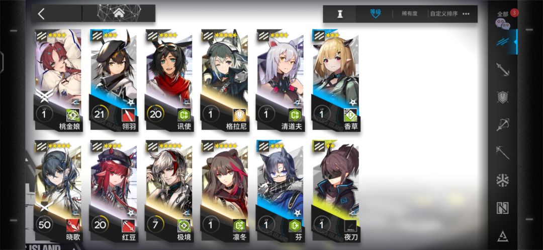,这里还有个叙拉古活动开的小号,没怎么玩,26级也有3个精1满级的6⭐了