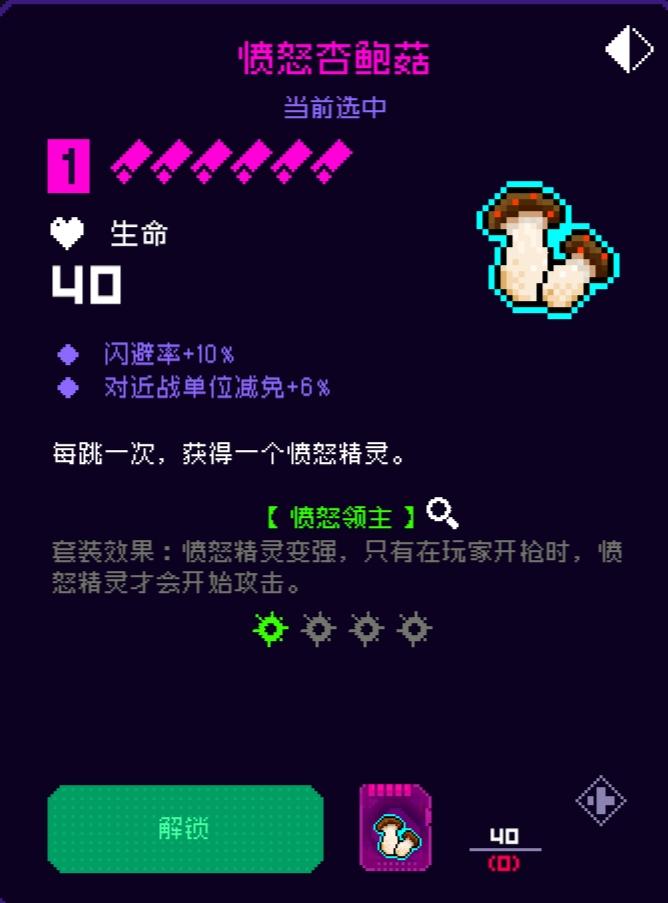 愤怒杏鲍菇(六号位)可以保证你的愤怒精灵一直是一个到达上限的纪念品,但如果你开局选了个飞行道具那这个纪念品就废了,所以玩愤怒领主并不推荐去带飞行道具(关于飞行状态下也能产出愤怒精灵的问过后是bug,估计很快就会修复了。具体手法:带飞行器先按着跳不放,然后摇杆一直按下就自动无限跳了)