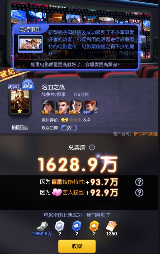 玩过“票房大卖王”的玩家应该知道,游戏核心内容就是拍摄电影,就如游戏介绍:化身名导,纵横影视圈,拍属于你的大卖电影 !