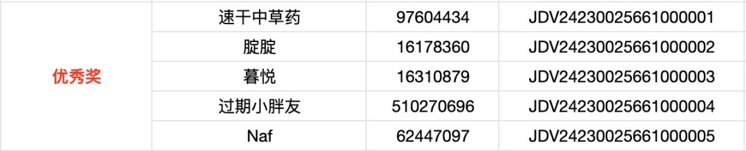 优秀奖的京东卡卡号如下,请查看站内信推送的密码哦!