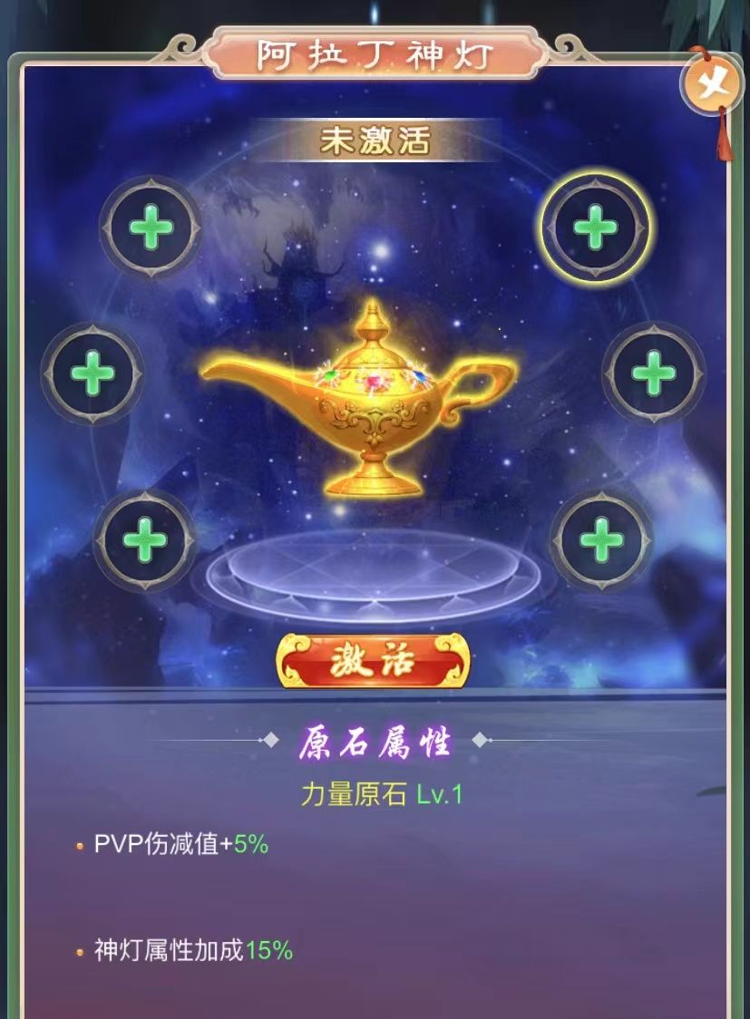 神灯许愿也可以对玩家在PVP战斗中实现伤害减免,玩家可以通过激活神灯后对配置原石实现伤害的减免。